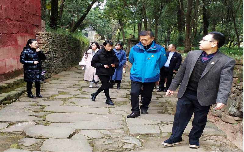 下午14:00,支部全体党员于学前教育实训楼前集合,统一前往本次主题活动第一个目的地——庞统祠。庞统祠是四川最早、保存最为完整的一处三国蜀汉遗迹,不仅是三国蜀汉政权兴亡的见证地,而且也是全国唯一纪念三国时期政治家、军事家庞统的专祠。1980年被四川省人民政府公布为省级文物保护单位,2006年被国务院公布为全国重点文物保护单位。沿着祠区幽幽古径,伴着讲解人员详细、全面的讲解,仿佛千年前的历史画面又重新印入眼帘,大家对三国历史、古蜀文化有了更多了解。
