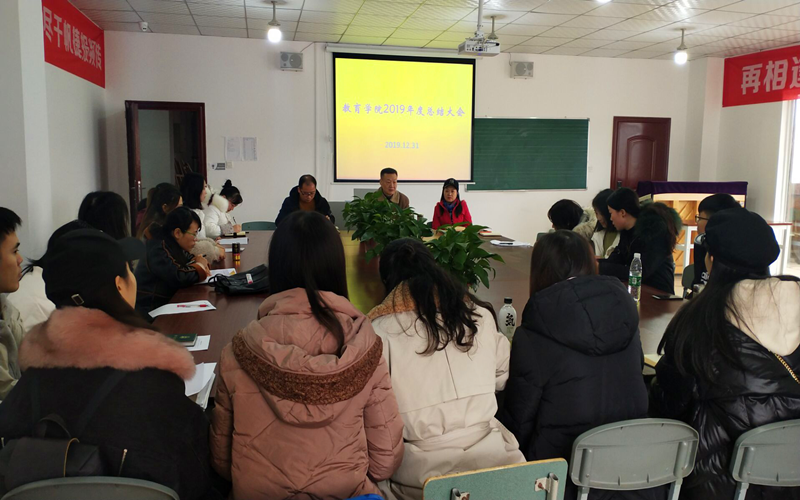 2019年12月31日,教育学院在学前教育实训楼召开了2019年度总结大会。学院院长吴节义、支部书记熊定永、副院长孙红英及全体教职工参加会议。