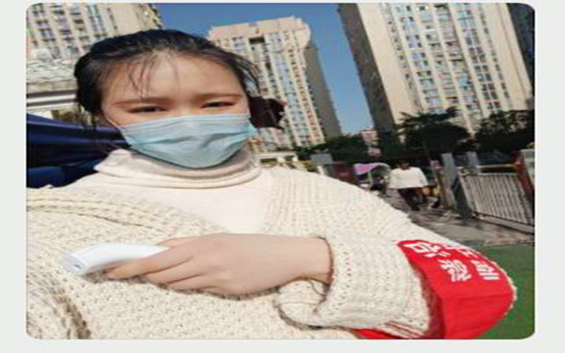 教育学院2018级法律文秘二班学生余婷,教育学院团总支学生分会生活部部长,班级团支部书记,在疫情控制的关键时刻作为志愿者积极主动参与到四川省邛崃市临邛镇三好社区街道办站在社区防控疫情最前线, 余婷的主要工作职责是负责社区值班站岗、为出入居民测量体温、行人登记等,看似简单的工作在碰到不配合的人员时却也需要反复的解释、说明,但她依然认真的完成了工作。她说:“相比于医生护士战在没有硝烟的战场上,我们更应该站好自己的岗、担好自己的责!每天清晨出门,等晚上回到家忙完所有的事,亲人已经入睡很难和家人聊聊天。我将疫情防护视为自己的每一项工作,做细自己的每一项工作,让疫情止于自己就是对自己最大的褒奖。”