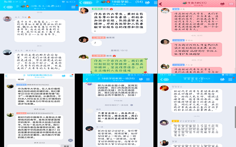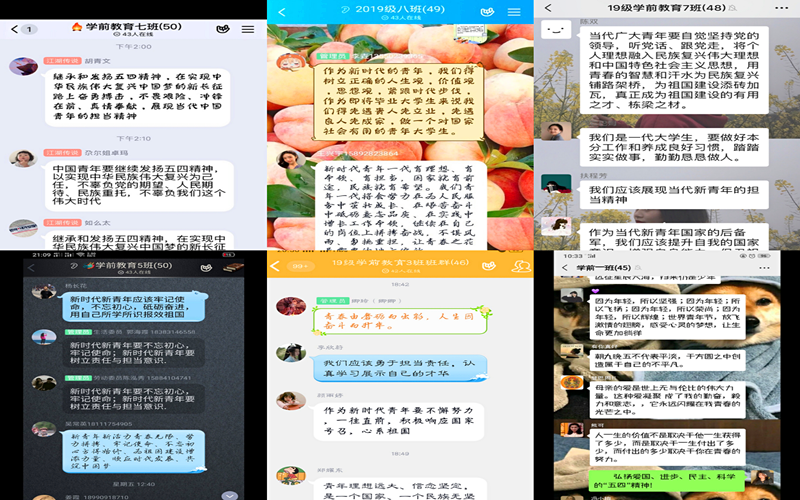 为继承和发扬“五四”精神,大力加强我院学生的思想道德建设,增强团组织的凝聚力和战斗力,响应共青团省委《关于组织青年学生深入学习宣传贯彻总书记五四青年寄语精神的通知》,5月9日下午,教育学院团总支组织全院青年学子以线上讨论、主题团课、学习感言、作品征集等多种形式进行探讨、学习,以解读、贯彻总书记五四寄语精神。