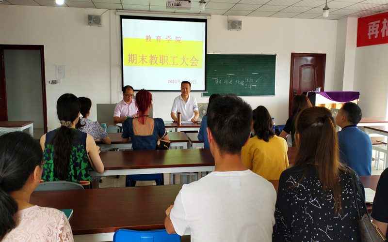 6月29日,教育学院在实训楼召开期末工作会议,院长吴节义主持会议,党总支书记熊定永、副院长孙红英及学院全体教职工以及兼职辅导员均参加了本次会议。