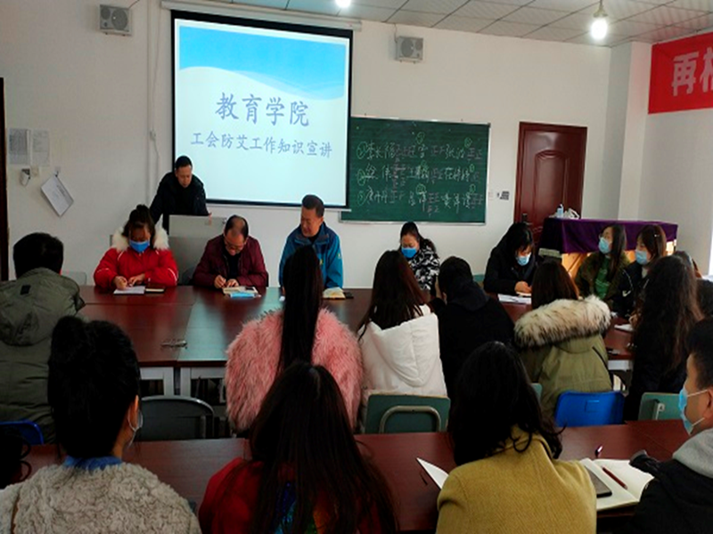 为增强教职工防艾意识,全面认识艾滋,正确看待艾滋患者, 教育学院工会小组12月17日在学前实训中心召开了防艾知识宣讲会,学院院长吴节义、党总支书记熊定永、副院长孙红英及全体教师参加会议,防艾知识宣讲由学院工会小组组长李印平主讲。