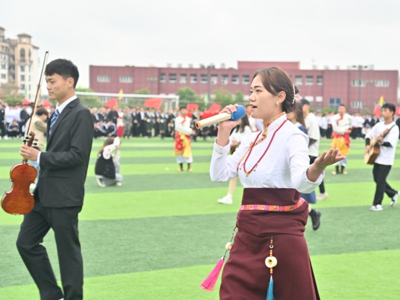 开幕式上,由教育学院和财经学院以及其他二级学院组成的团体操表演充分展现了同学们的青春活力和热情欢快,来自全校各学院和学生社团的表演方队和彩旗方队,以建党100周年为背景给全校师生带来了一场富有创意、激情昂扬的表演。开幕式的成功举行演绎了历代工科人团结一心,励精图治,艰苦创业的精神风貌,赢得了观众席阵阵雷鸣般的掌声,同时也展现出了各民族大学生的大团结、大繁荣,让四川工业科技学院的各族工科儿女沐浴着党的阳光雨露,继往开来,共同迎接建党一百周年华诞。