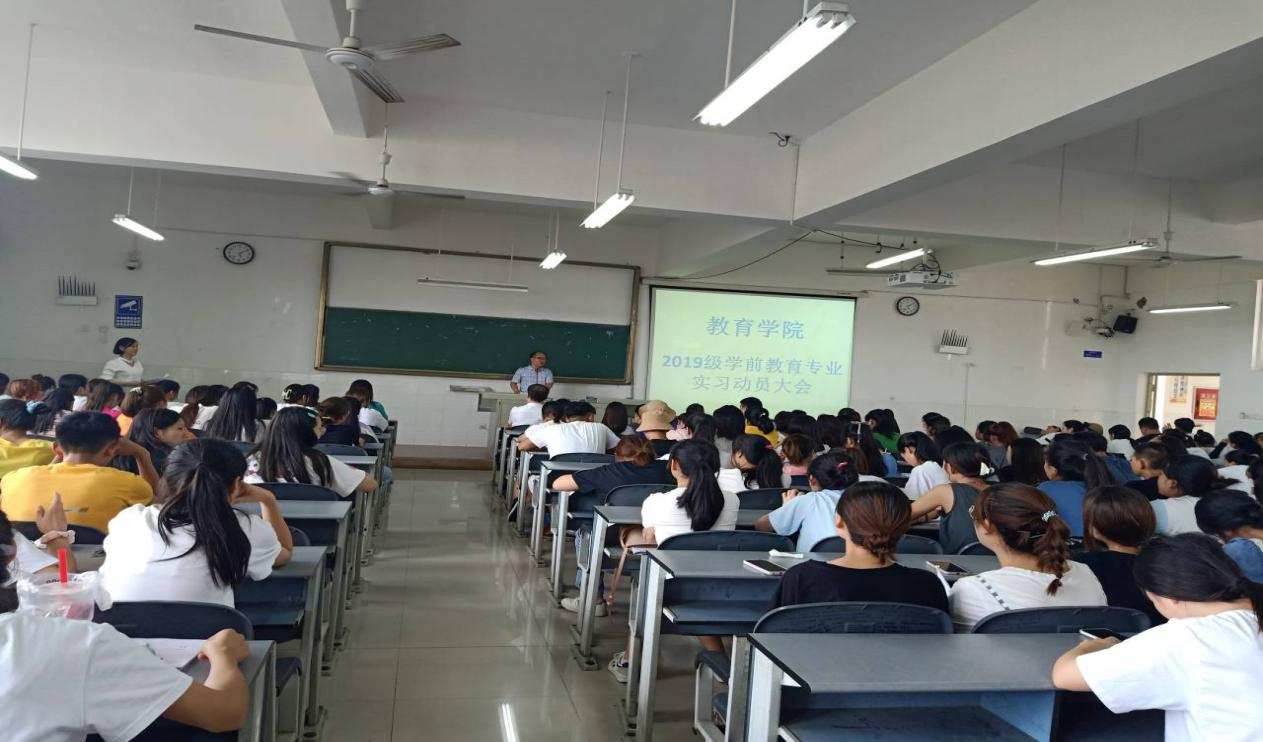 为强化专业实践技能,保障教学实习工作顺利开展,促进同学们更清晰地认识和适应专业职业岗位,教育学院于7月20日在毓秀楼305召开了2019级学前教育专业实习动员大会。院长吴节义、党总支书记熊定永、副院长孙红英、相关班级辅导员及2019级1-6班全体同学参加了大会。会议由学工办副主任黄译漫主持。