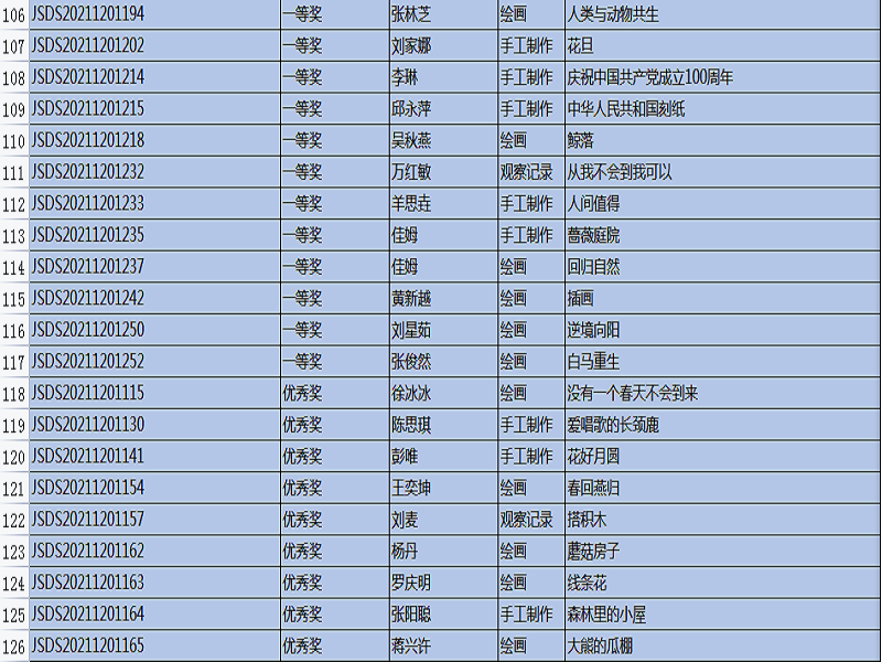 “全国幼儿教师职业技能大赛”,是幼儿教师培养工作的重要组成部分,是促进教育质量提高的重要途径,是教师分享、交流、进步的平台,也是教师完善自我、提升自我、超越自我的体现。本次比赛主题是:创新,源于对教育的感悟,比赛时间从9月开始一直延续到11月中旬结束,比赛项目有: 教案、说课稿、教育随笔、观察记录、案例分析、论文、半日活动设计、主题教育活动设计、手工制作、绘画、故事讲述、手指游戏,共12项。在12月20号刚刚公布的成绩中,我院学生通过激烈的竞争和角逐,所有参赛作品均获奖。其中,一等奖20份,二等奖51份,三等奖45份,优秀奖35份。本次技能大赛的硕果累累,增加了教师之间的专业交流,促进了幼儿教师的职业素养,更好地践行了《纲要》和《指南》精神,也对我院学前教育专业的教学质量交上了一份满意的答卷。