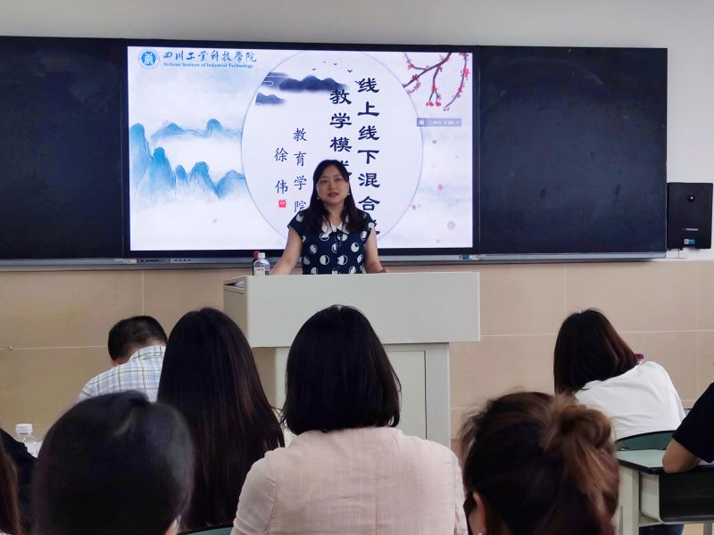 疫情当下,线上线下混合教学模式是保证教学工作顺利开展的必备教学技能,徐伟作为学院教学主任,考虑到我院新教师很多未能熟练地应用超星学习通建课、授课,对超星学习通的很多功能还比较陌生,百忙之中专门开设本次讲座分别从混合式教学介绍、线上线下混合式教学前期准备、课前在线开放课程的自主学习、课上系列教学活动的组织、对混合式教学的思考五个部分对学院全体教师进行集中培训讲解。本次讲座不仅让老师们进一步熟悉了学习通的众多应用功能,更重要的是徐伟主任给全体教师上了一堂生动的课,让老师们从中感受到了她精湛的教学水平。