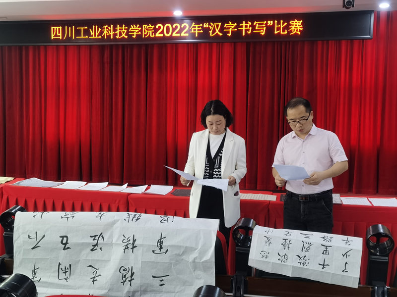 5月27日,四川工业科技学院2022年中华经典诵写演讲系列活动之“笔墨中国”汉字书写大赛评选工作在图书馆301报告厅顺利举行。本次比赛邀请到德阳市优秀专家、市书法家协会常务理事张进砂、东区办公室主任吴玲、教育学院党总支书记熊定永担任评委,对全校参赛师生的作品进行了进行线上线下联合评选。