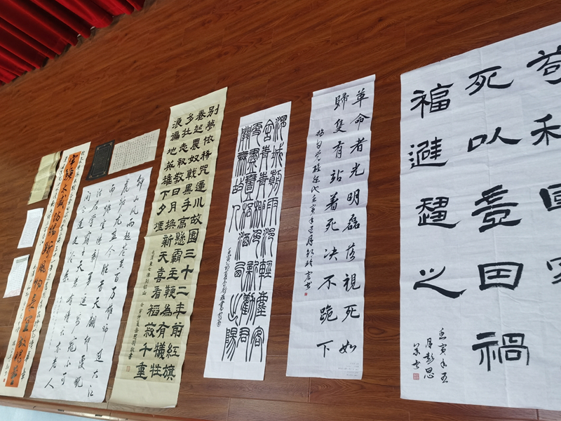 通过前期的报名,本次比赛共收到师生书法作品三十三份。参赛作品所选内容均为中华优秀文化、爱国情怀以及反映积极向,上时代精神的古今诗文、楹联、词语、名言警句等。其中,硬笔类作品均使用了规范汉字,字体使用了楷书或行书。毛笔类作品基本为规范汉字,因艺术表达也有作品使用繁体字及经典碑帖中所见的写法,通篇统一,没有出现繁简混用的情况。