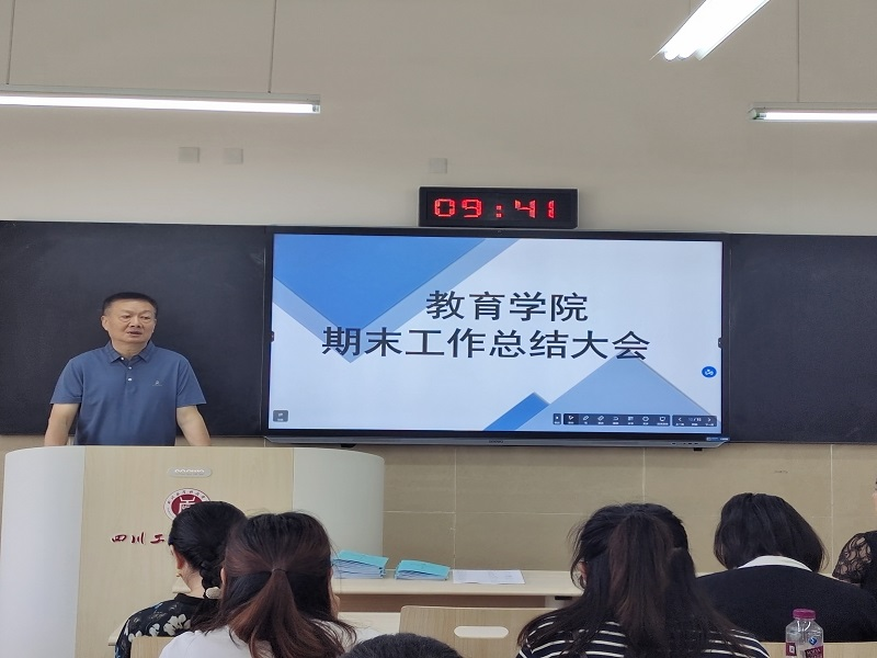 6月10日,教育学院在龑江校区B505教室召开期末工作会议,院长吴节义主持会议,学院党总支书记熊定永、副院长孙红英及全体教职工均参加了本次期末工作会议。