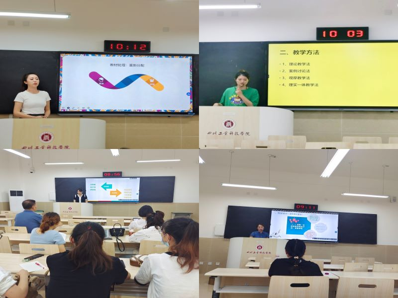 本次说课活动以教研室为单位,经8个教研室的推荐分别产生了18名说专业建设、说课程建设和说课程教学的老师。这18名教师中有教学生涯十年以上的,也有刚入职的新教师,有各专业负责人,也有课程负责人和专任教师。通过本次说课活动不难看出参加活动的老师们前期都进行了精心准备,她们教姿教态规范标准,教学语言表达准确到位,课件制作精美大方,说课内容目标明确,思路清晰,过程设计合理,展现了过强的教学技能和教学风采。