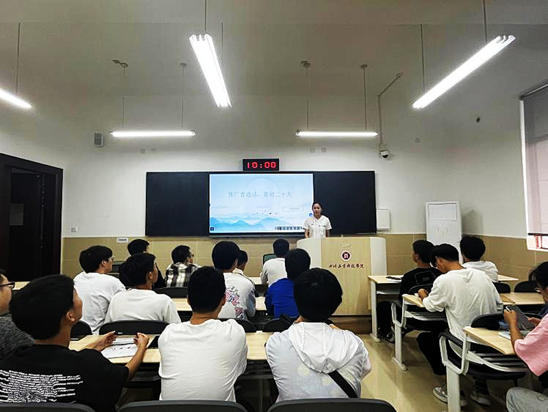2.学工部高度重视推普周工作,积极制定推普计划并召集各二级学院学工负责人召开了推普工作动员会,倡议全校各班开展以“推广普通话,喜迎二十大”为主题的班会教育活动,并要求在班会中,播放大学生语言文字推广中心的师生拍摄的推普周宣传视频。这一举措极大的加强了推普周的宣传力度,让说普通话、写规范字深入人心。