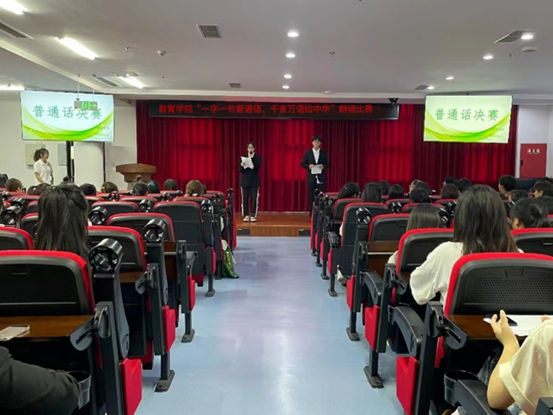 9.教育学院举办了“一字一句普通话,千言万语绘中华”的主题朗诵活动,通过开展经典诗文诵读活动,让全体师生都深刻体会到了中国传统文化的博大精深。