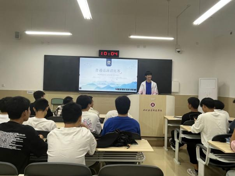 5.智能制造与车辆工程学院举行了普通话演讲比赛,同学们积极参与,不仅抒发了对于祖国的热爱,也在激烈的比赛中体会到了普通话的重要性。此外,学院还组织学生干部及党员响应二十大的主题对推广普通话的活动述写自身的心得体会;各班团支书也策划了线上普通话练习活动。