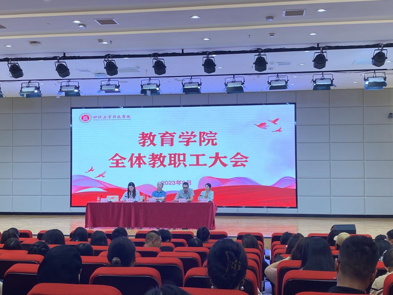 9月14日下午,教育学院于龑江学村C区报告厅召开全体教职工大会。会议由教育学院党总支副书记主持,教育学院党总支书记、教育学院院长,教育学院副院长、教育学院党总支副书记、教育学院院长助理及全体教职工参加了此次会议。