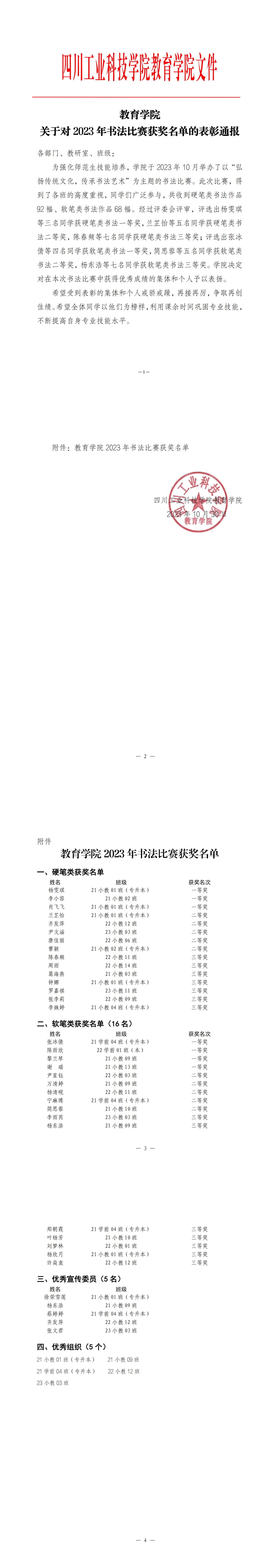 教育学院关于对2023年书法比赛获奖名单的表彰通报