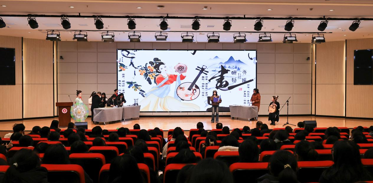 中国尚有礼仪之邦、文明古国之称,究其原因,答案恰是源远流长的传统文化。伴着王誉晓老师弹奏的阮声,来自21级学前04班(专升本)的余敏仪同学翩翩起舞,一袭青衣、一把纸伞、一只铃鼓,动听的琴声、优美的舞姿将传统文化的“美”展现得淋漓尽致;与此同时,技能教研室熊定永老师和22级小教03班尹星钰同学妙笔生花,写下“书山有路勤为径,学海无涯苦作舟”“读书破万卷”,美育教研室教师胡邈聍和22级小教15班陈虹利同学共同绘制一幅《枇杷》,书画同源,尽显传统文化的魅力。一方舞台上,“书”“画”“琴”“舞”同时进行,将本次分享会推向高潮。而后,教育学院党总支副书记曾晓莉,为书画作品颁发收藏证,作品将展示在教育学院实训中心展厅。