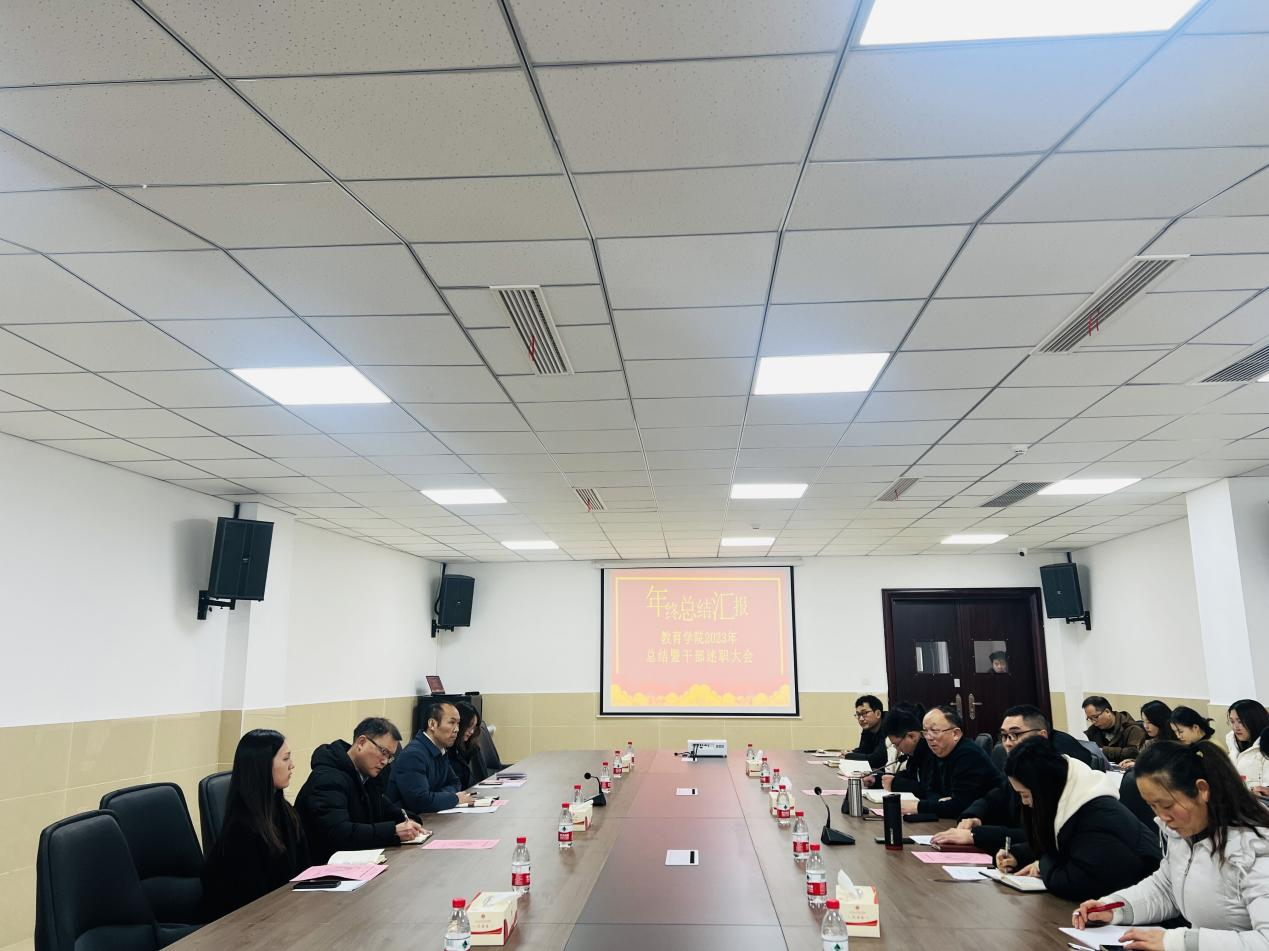 1月2日下午,教育学院在龑江E-514会议室召开2023年总结暨干部述职大会。学校纪委书记、党政办公室主任陈亨贵,教务处处长许敏、学生处副处长何林贵、人事处陈佩瑶、教育学院党总支书记、院长何忠国及其他教师代表参加了此次大会,会议由何院长主持。
