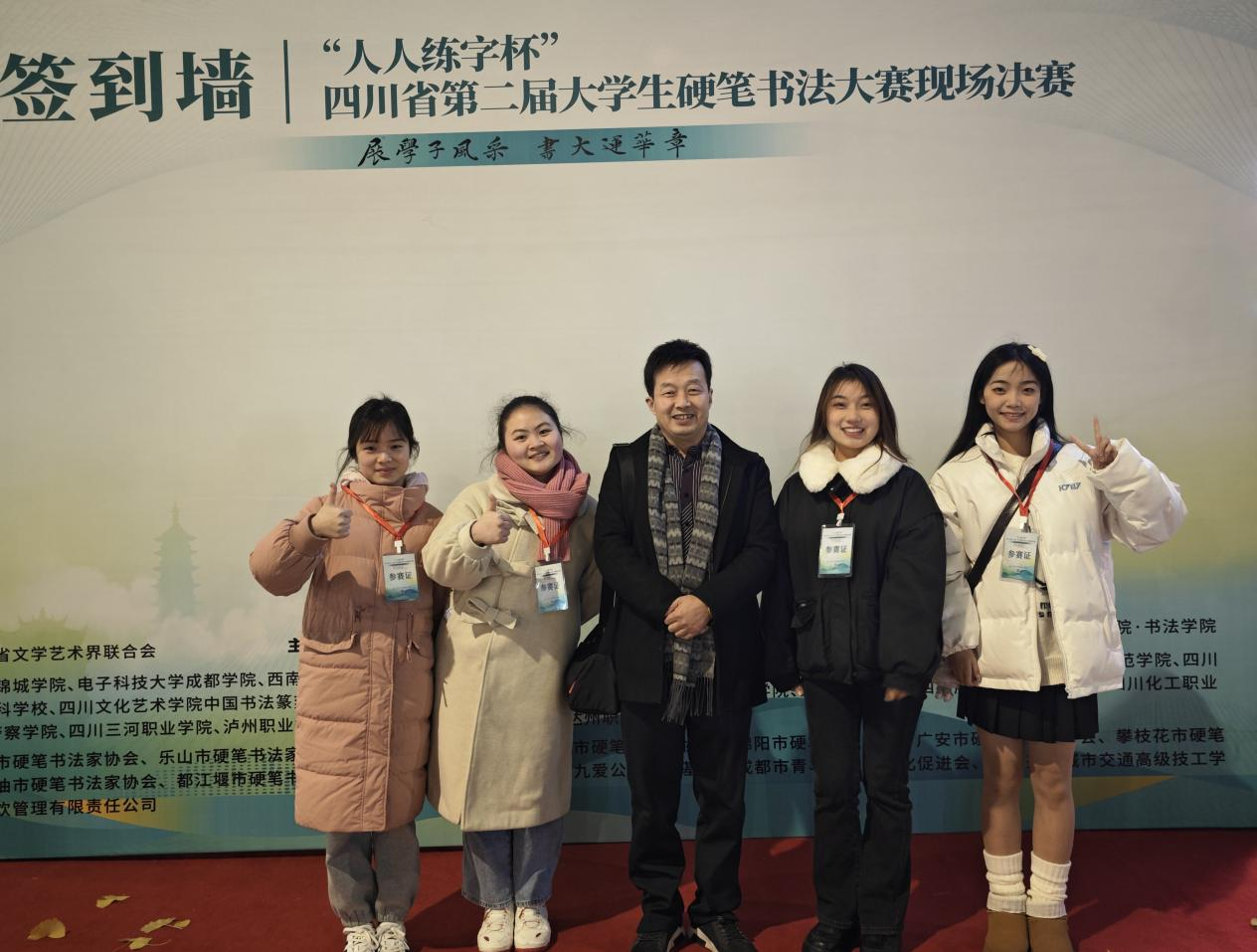 1月7日,教育学院学生在三笔字专职教师张进砂、熊定永的带队指导下,参加了由四川省文学艺术界联合会指导,四川大学书法研究所、四川师范大学美术学院·书法学院学术支持,四川省硬笔书法家协会主办的“人人练字杯”四川省第二届大学生硬笔书法大赛。