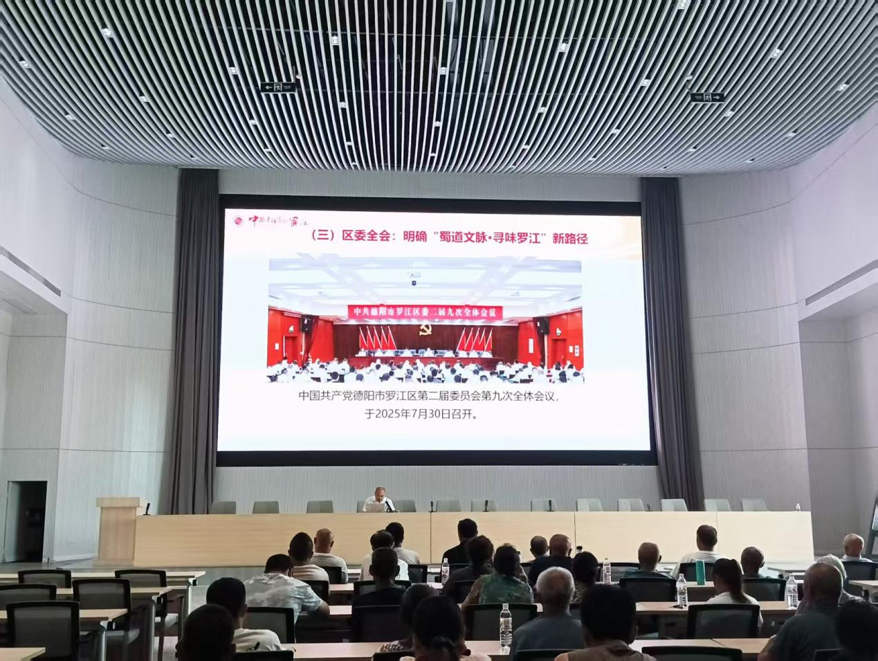 蔡林教授以《推进农文旅深度融合 高质量打造成渝地区休闲旅游目的地》为题,通过“一张蓝图、三个故事、六组数据”的系统框架,生动解读了“锦绣天府·安逸四川”“世界三星堆·安逸游德阳”“蜀道文脉·寻味罗江”等发展战略的实践路径。宣讲内容聚焦“大蜀道”申遗、“大白马关”5A级景区创建、“稻油轮作”种子博物馆、“四季乡村游”等具体项目,以翔实数据与典型案例展现罗江发展机遇,现场反响热烈,听众纷纷表示收获颇丰。