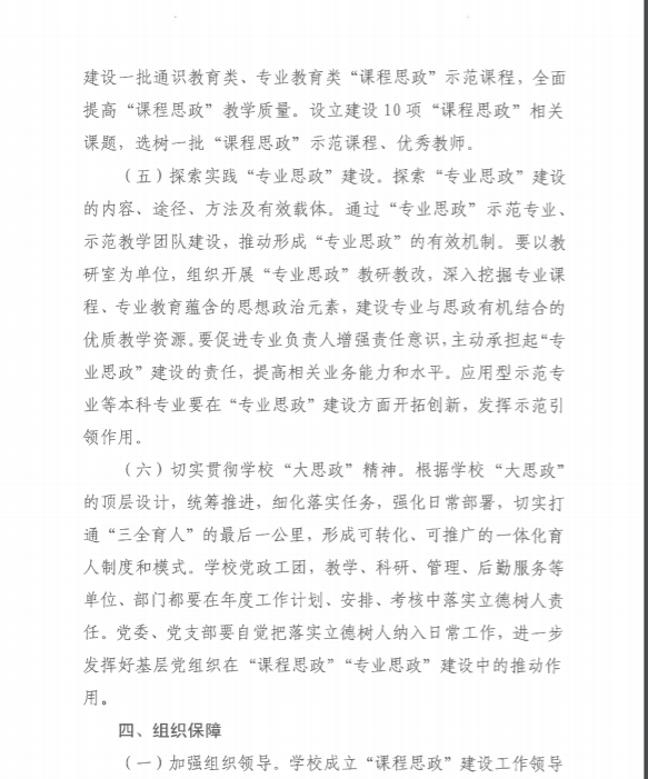 四川工业科技学院关于印发《关于全面推进“课程思政"建设落实立德树人根本任务的实施意见》的通知。