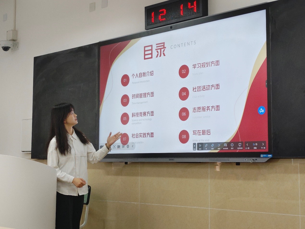 在介绍了自己大学期间所获得的荣誉之后,甘妮慧分享了自己的学习规划,由此建议我们应该先夯实专业基础、找准自我定位、打磨核心优势,在把专业知识掌握好的基础上去考取各个证书;其次,她为现场同学们传授了合理安排时间的经验,介绍了许多高效的学习方法;最后,她分享了自己在社会实践方面抓住契机、提升自己的经验,鼓励同学们积极参与社会活动,开阔眼界,全面发展。在甘妮慧的个人分享结束后,现场的同学们积极地提出相关疑问,她也耐心地一一解答,使现场气氛逐渐活跃、同学们受益匪浅。