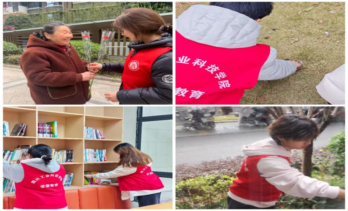 3月8日,学校教育学院在罗江区芙蓉溪苑社区开展“雷锋同行,共建社区”志愿服务活动。