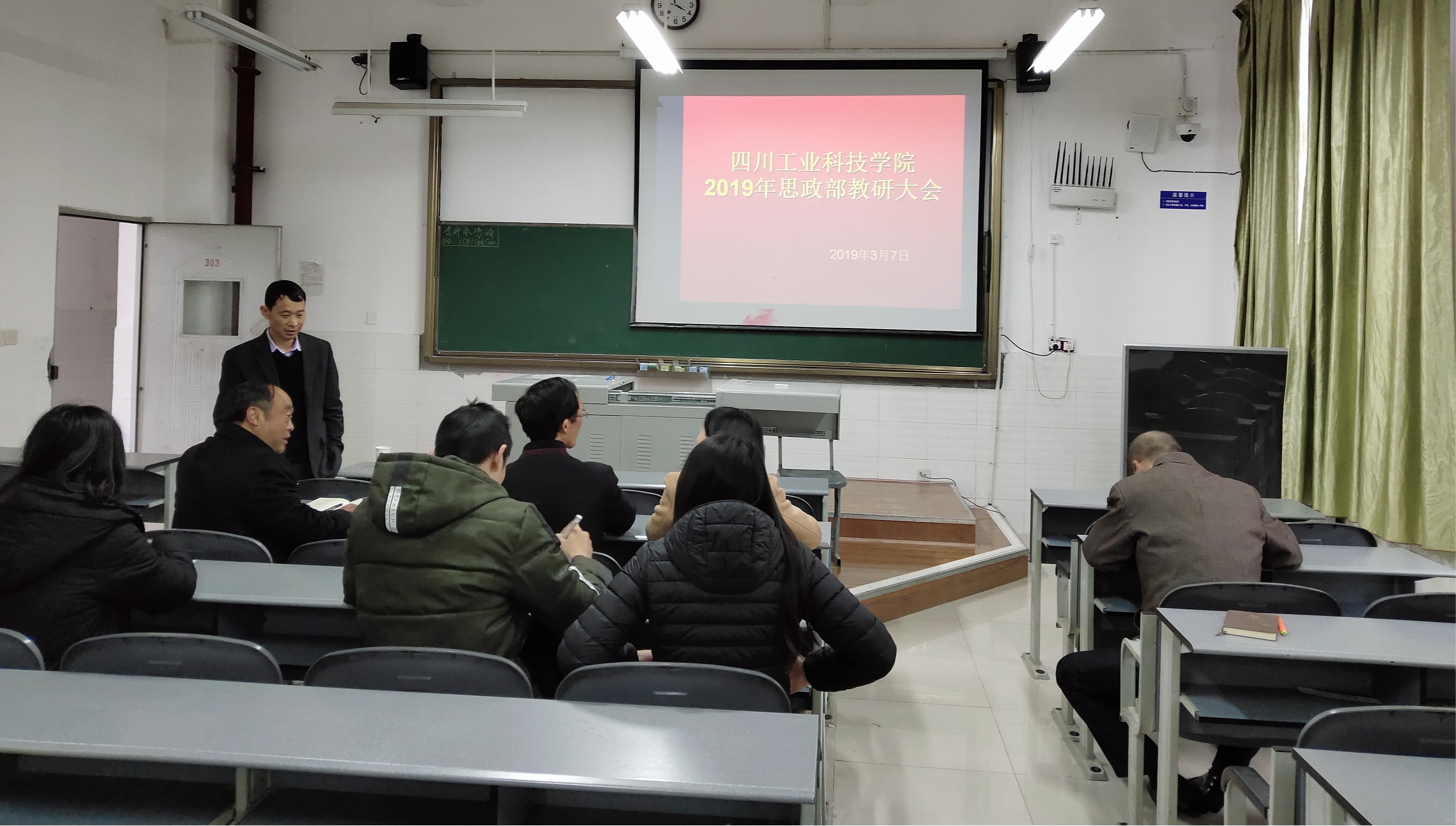 为了提高教学质量,完善教学环节,更好地完成本学期的思政教学任务,思政部于3月7日在毓秀303教室召开了2019年新学期思政部教研大会。学校党委书记魏崛、思政部主任陈富全以及思政部专兼职教师参加了本次教研会议。