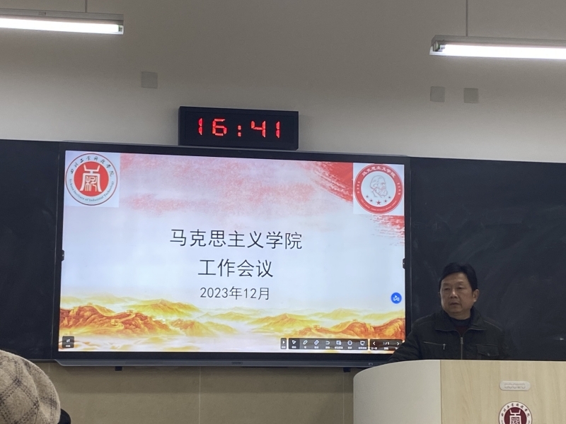 为进一步确保期末各项教育教学工作有序进行,马克思主义学院于12月21日下午16点,在龑江校区B205教室会议室召开期末工作会议,会议由马克思主义学院副院长谭军主持,学院全体专兼职教师参加了本次会议。