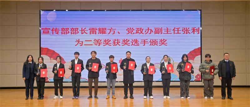 宣传部部长雷耀方、党政办副主任张利为二等奖获奖选手颁奖。