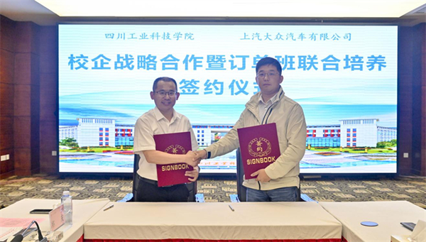 为深化“产学研用”一体发展新路径,促进产业链、专业链、人才链和创新链有效融合,提升人才培养质量和高质量就业,服务新质生产力发展的需要,5月8日,四川工业科技学院与上汽大众汽车有限公司举行校企战略合作暨订单班联合培养签约仪式。