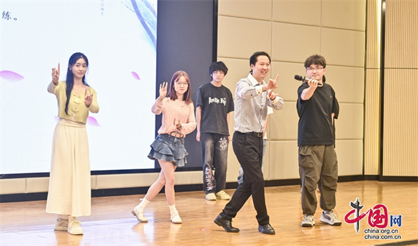 在现场,肖老师还邀请了同学上台与他一起互动,现场教授同学踏步和跨步等身段技法。“台上一分钟,台下十年功”,戏曲动作的亲身体验,让同学们深刻感受到表演的难度,同时,也对肖老师精湛扎实的功底更加钦佩。讲座最后,肖老师的学生为现场观众带来了一场精彩绝伦的川剧变脸,将现场的气氛推向高潮。