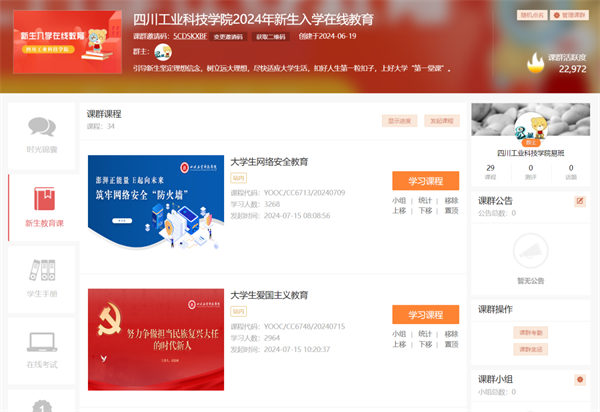 据悉,2024年8月,学校办公室发布《关于在易班开展2024年新生入学在线教育的通知》,在录取通知书的《新生入学指南》中印制易班注册认证和新生入学在线教育流程。邀请学校党委宣传部、学生处、安保处、马克思主义学院教师以“理想信念教育、行为养成教育、社会实践教育、成长规划教育”为主题录制大学生思想政治教育、爱国主义教育、网络安全教育、校规校纪教育、国防教育、心理健康教育、职业生涯规划、图书馆入馆教育、奖助学贷政策解读等网络课程。