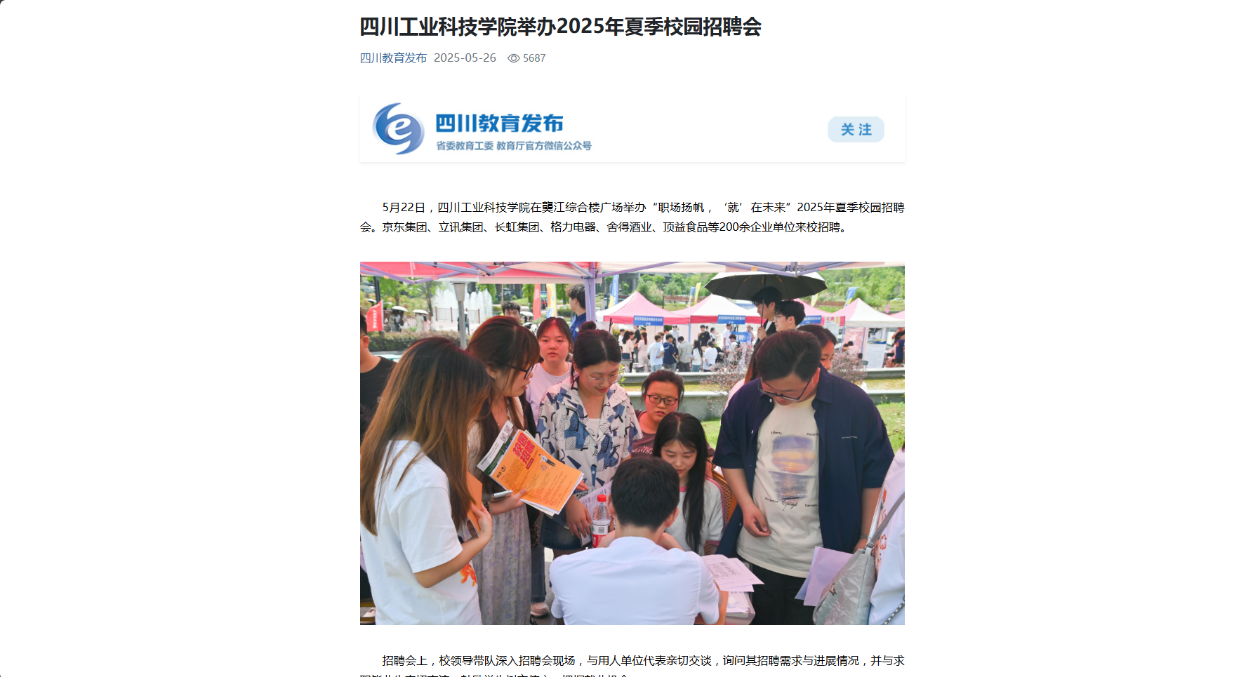 【四川教育发布】四川工业科技学院举办2025年夏季校园招聘会