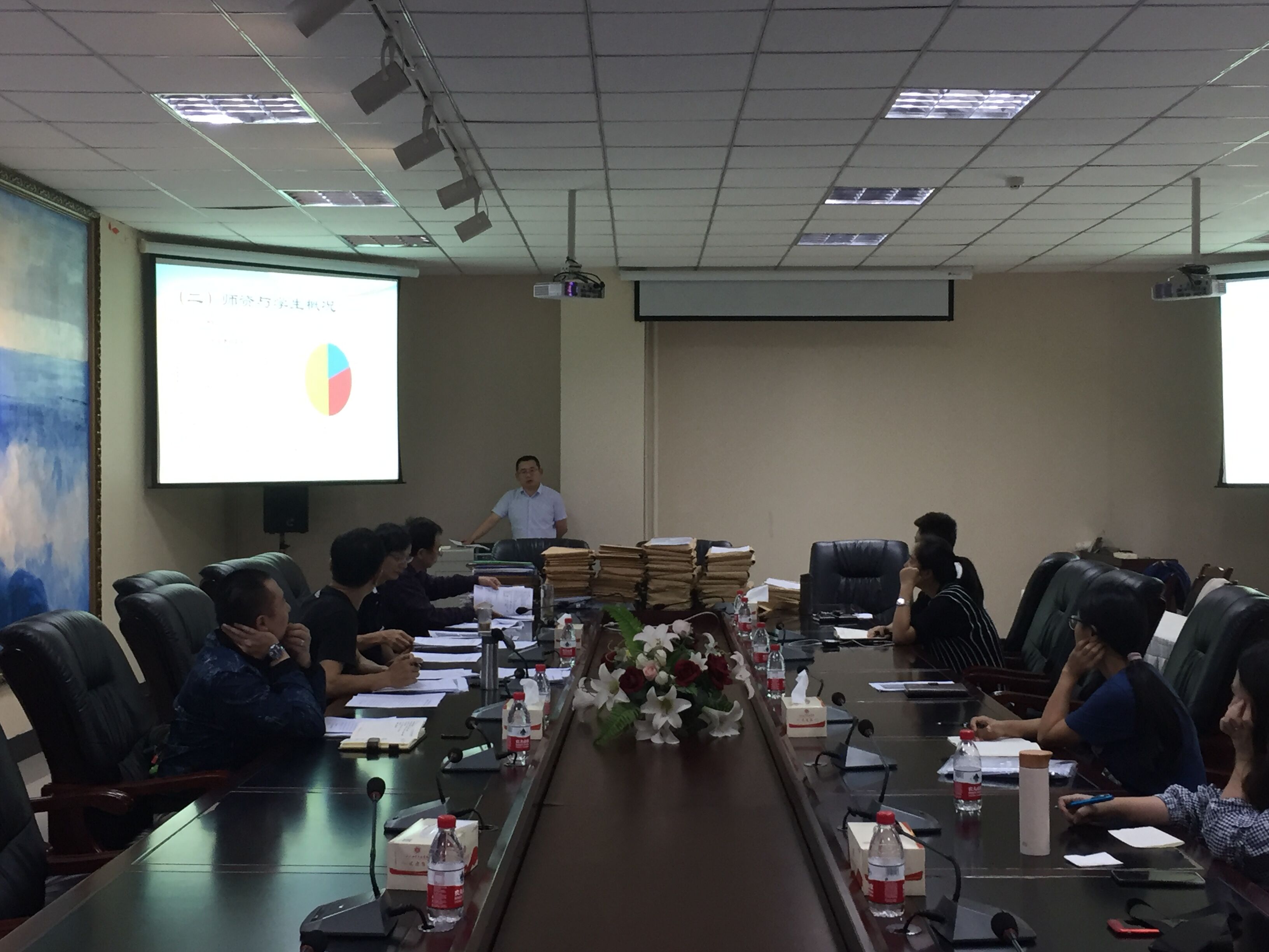 随后,陈堂按学校本科教学质量评估体系向评估专家进行了详细汇报。汇报突出了学院以评估指标作为工作方向,作为学院工作目标,评估工作人人参与、评估工作人人重视的工作原则,突出了学院本科评估整改重点工作,分析了整改工作中存在的不足和持续改进思路。