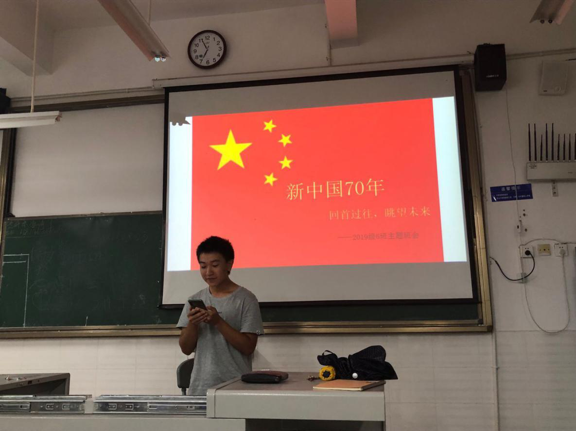 最后,同学们一起大声祝“祖国母亲70岁生日快乐”。本次班会在全体同学的热烈掌声中圆满结束。
