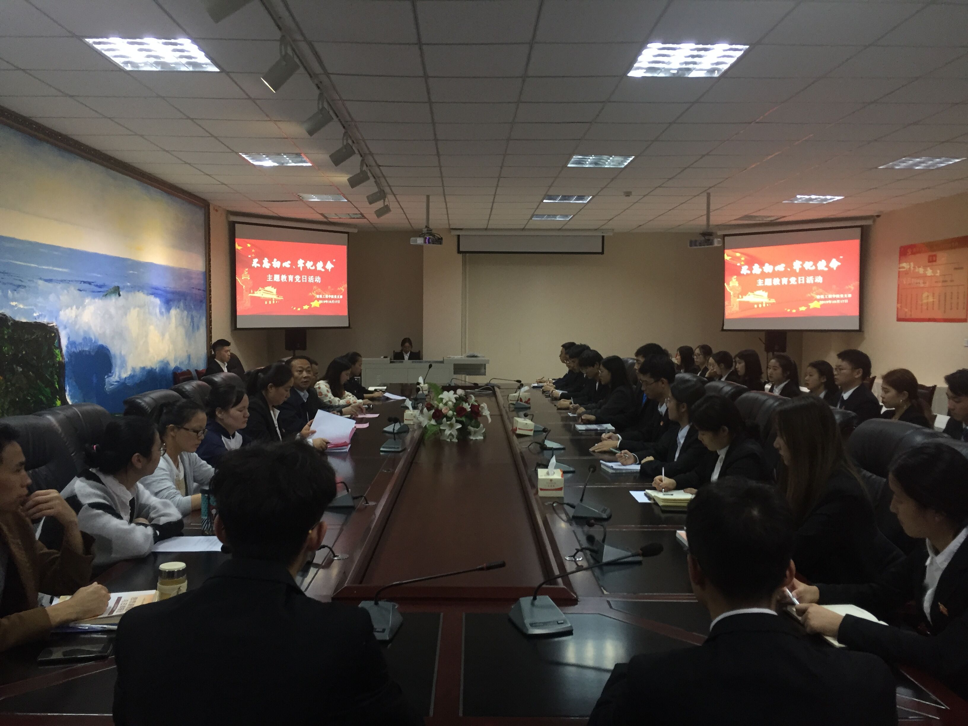 为深入学习贯彻习近平总书记系列重要讲话精神,扎实推进“不忘初心、牢记使命”主题教育落到实处,10月11日下午,建筑工程学院召开支部党员会议,集中开展“不忘初心、牢记使命”主题教育党日活动。学校学生处副处长、主题教育活动巡视员彭久军出席会议。杨春主持会议。学院师生党员共计40余人参加活动。
