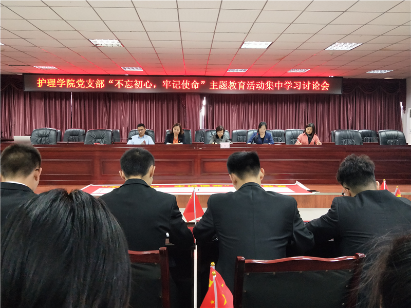10月11日下午,护理学院党支部在图书馆408室组织开展“不忘初心,牢记使命”主题教育集中学习讨论会。护理学院师生党员、入党积极分子、学生干部代表共计100余人参加了会议,会议由学院副院长刘琼碧主持。