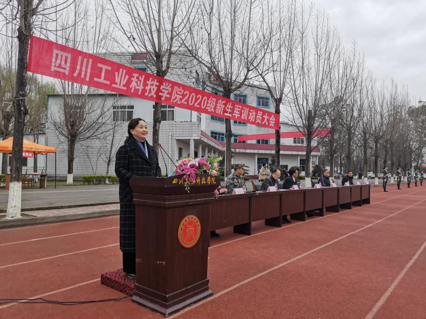 学校党委副书记、纪委书记、绵竹校区管委会主任倪霞代表学校党委、行政及军训团作了动员讲话,她要求参训所有同学,努力学习军事知识,掌握军事技能,发扬“流血流汗不流泪,掉皮掉肉不掉队”的军人作风,强健体魄、磨练自身意志,严格遵守军训组织纪律,圆满完成为期8天的军训任务。倪霞团长代表军训团向军训营授旗。随后,教官代表和受训学生代发言。