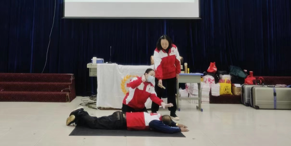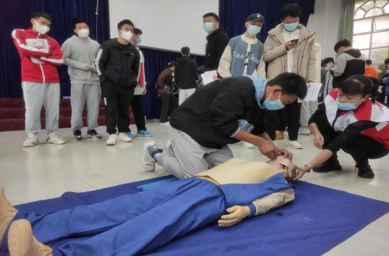 实操环节中,红十字成员向同学们演示正确的心肺复苏动作和创伤护理动作,认真解答同学们的疑惑,在演示和解惑结束后,同学们积极参与实操训练,根据红十字成员教授的动作有条不紊地在模拟橡胶人身上进行心肺复苏练习,此次实操理论与实践相结合,很好地加深了同学对应急救援的印象。