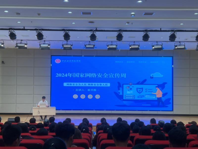2024年9月9至15日是2024年国家网络安全宣传周,经济管理学院在C区报告厅组织举办了专题讲座,全体2024级新生及辅导员到场参加。