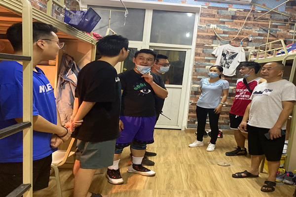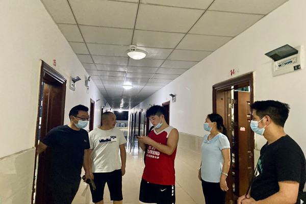 6月9日晚8点,智能学院党总支副书记杨郑、学工办主任马志雪和学生处公寓科陈军武科长一行,带领智能学院全体辅导员老师深入学生公寓,关心、看望第二批返校学生,并提醒同学们注意室内卫生、保持室内通风,叮嘱学生合理使用空调,预防感冒。