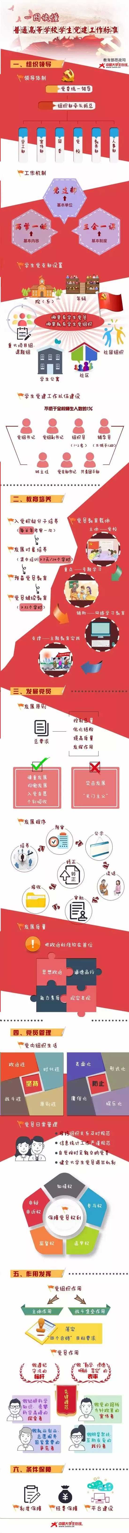 近日,中共教育部党组印发《普通高等学校学生党建工作标准》。《标准》共设置了组织领导、教育培养、发展党员、党员管理、作用发挥和条件保障6个一级指标,涵盖了党建工作的主要方面。每个一级指标下设2—5个二级指标,共20个二级指标。