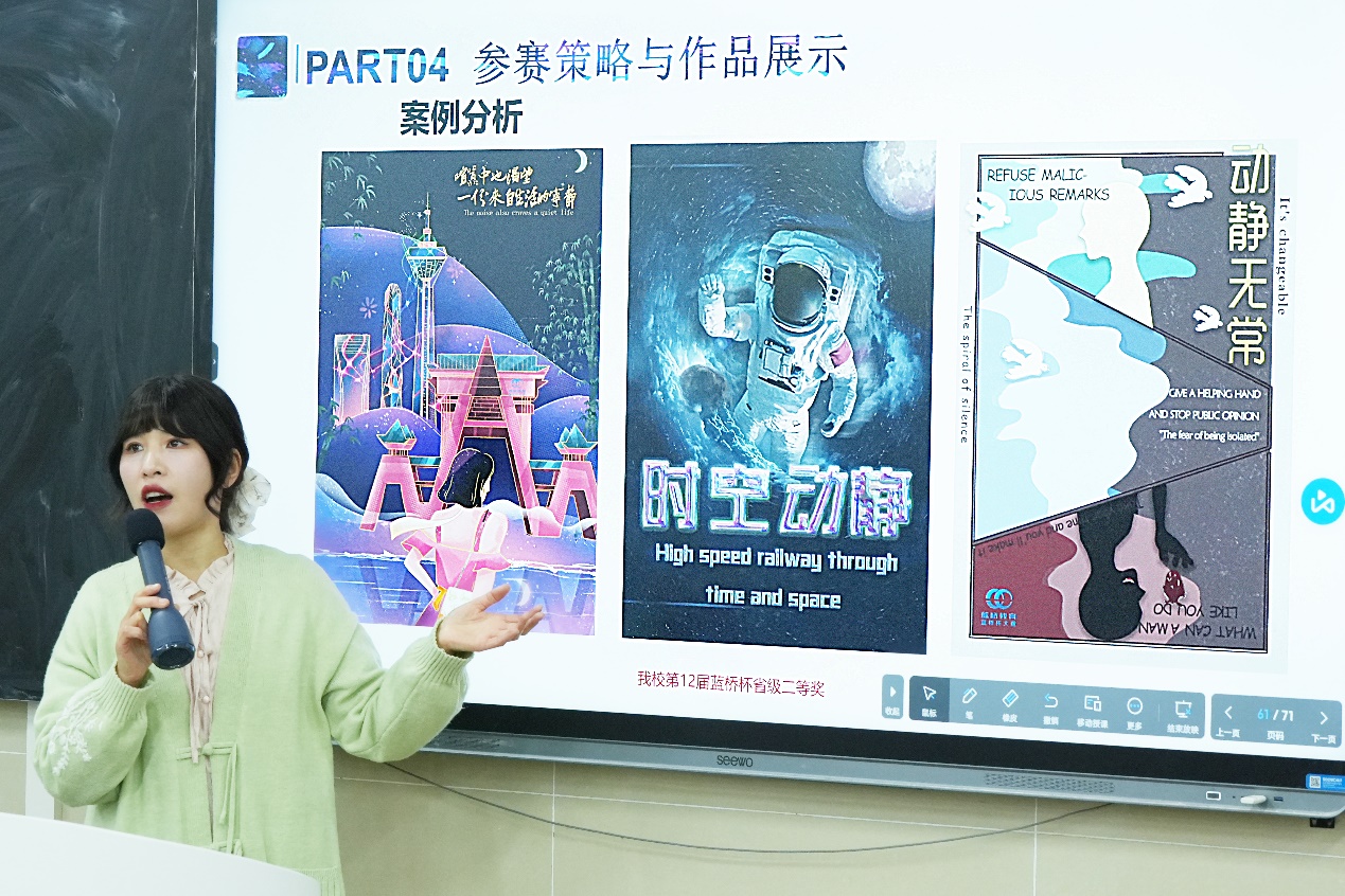 此次讲座不仅为同学们提供了学习和交流的机会,还激发了他们对视觉艺术设计的兴趣和创作灵感,同学们表示这将对他们在视觉艺术设计领域的学习和未来参赛有着积极的推动作用。