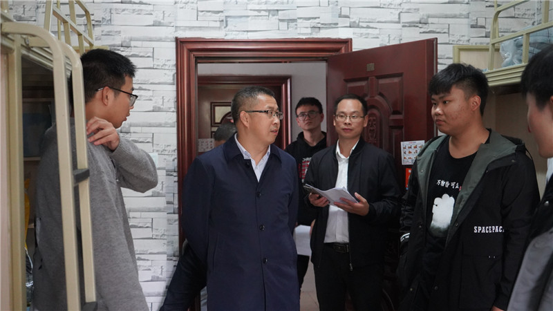 在骄子九栋学生公寓,张小南校长走进智能制造与车辆工程学院、管理学院的男生寝室与新生亲切交谈,仔细询问了他们的家庭情况、饮食习惯、住宿安排以及对未来的规划等,希望他们尽早适应大学生活,坚定理想信念,勤奋学习,不断加强自身的道德修养,练就扎实的本领,不负青春、不负韶华、不负时代。