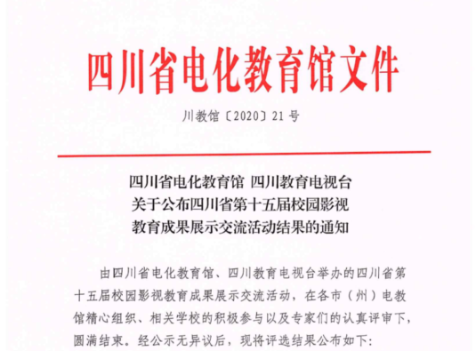近日,学校党委宣传部创作的2020年毕业季原创MV《心途》,在四川省第十五届校园影视教育成果展示交流活动中被评为校园影视节目校园综艺类一等奖。