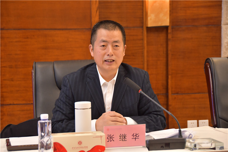 张继华代表学校董事会向张彬老师颁发了奖金,并对他获奖表示热烈祝贺。他希望全校师生以张彬老师为榜样,发扬光大伟大的抗疫精神,立足本职,不断开拓创新,在教学科研上取得辉煌成就,实现个人专业成长与学校发展的和谐共进。同时,希望张彬老师珍惜荣誉、再接再厉、锐意进取,在原创歌曲的创作道路上不断取得新的成就,为学校以文化人、以文育人增光添彩。