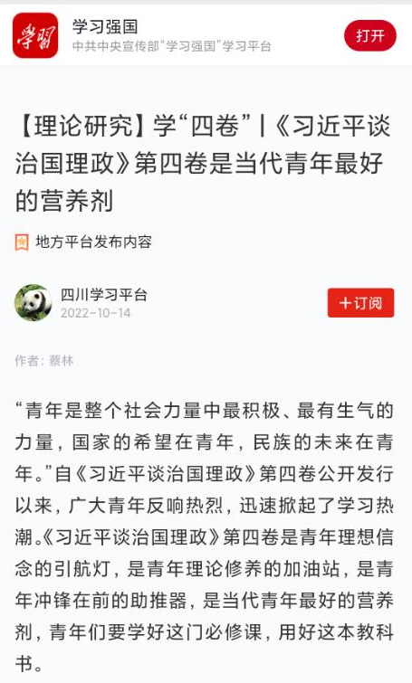 蔡林在文章中指出,自《习近平谈治国理政》第四卷公开发行以来,广大青年反响热烈,迅速掀起了学习热潮。《习近平谈治国理政》第四卷是青年理想信念的引航灯,是青年理论修养的加油站,是青年冲锋在前的助推器,是当代青年最好的营养剂,广大师生青年要学好这门“必修课”,用好这本“教科书”。