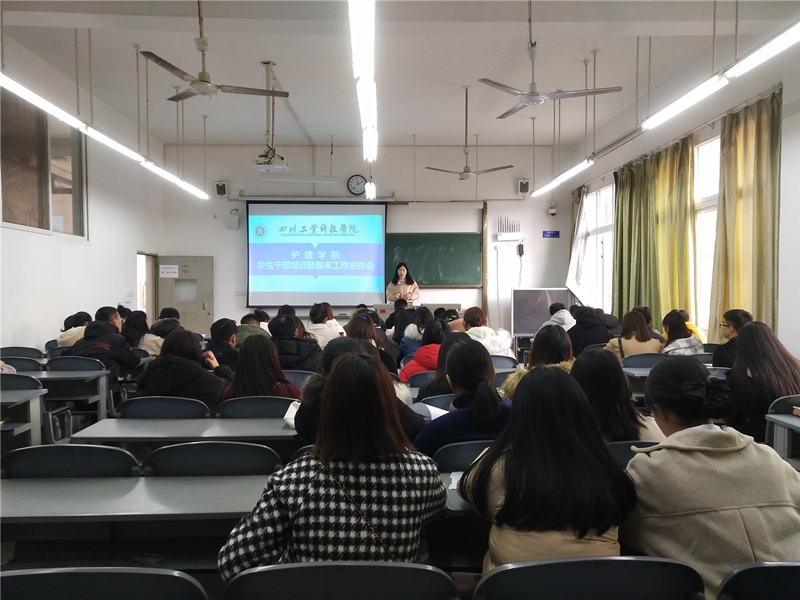 为提高学生干部工作能力,进一步加强期末阶段学风建设及安全教育,12月6日中午,护理学院在钟灵103教室召开学生干部培训暨期末安全教育会议。护理学院党支部副书记李双晶出席了会议,各班班长、团支书及学生会主要干部共70余人参加了会议。会议由学院团总支书记李丹主持。