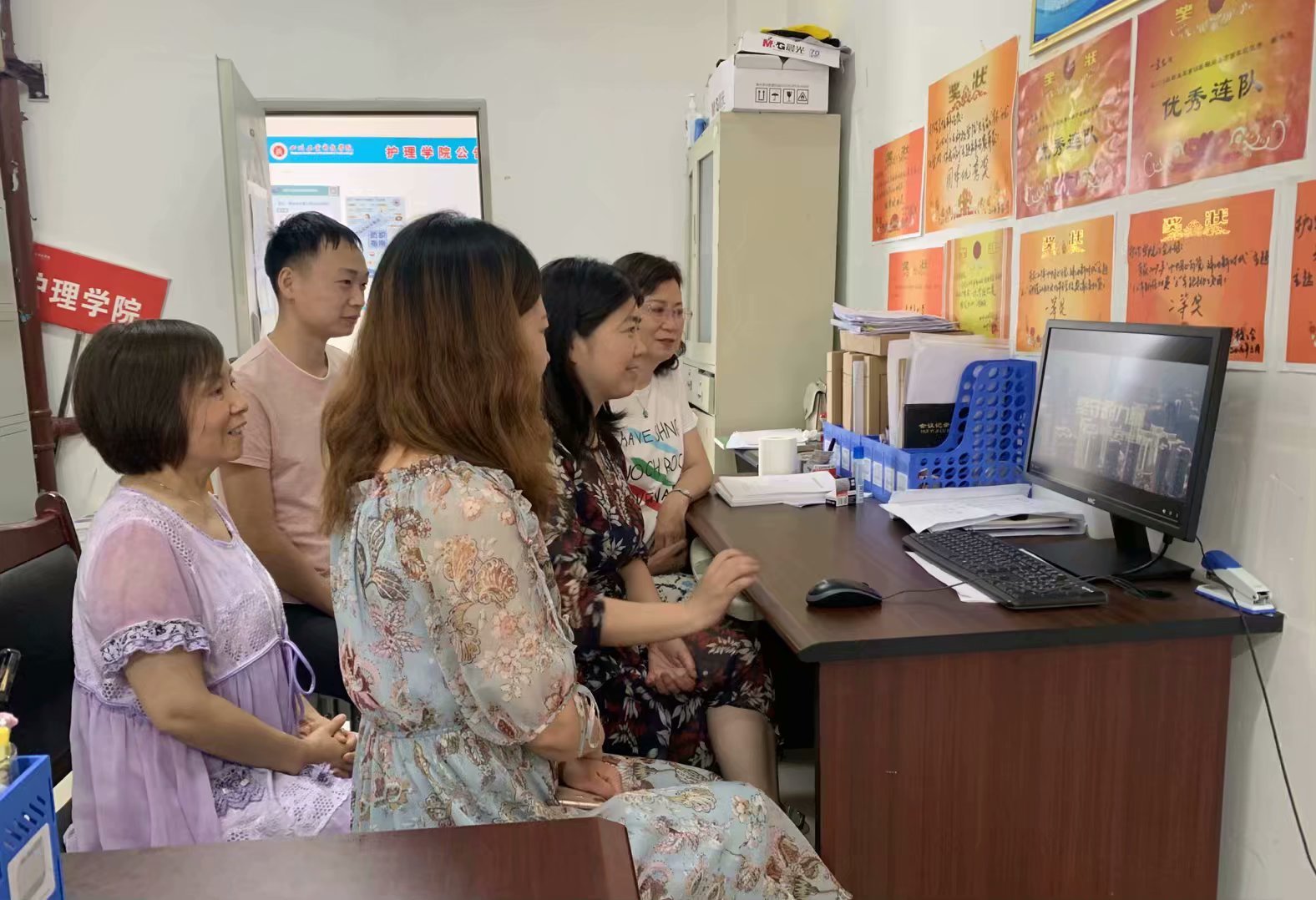 6月4日上午,护理学院院长陆春桃、党总支副书记李双晶,组织全体教职工在线学习2020年“全国安全生产月”主题宣传片《坚守的力量》。