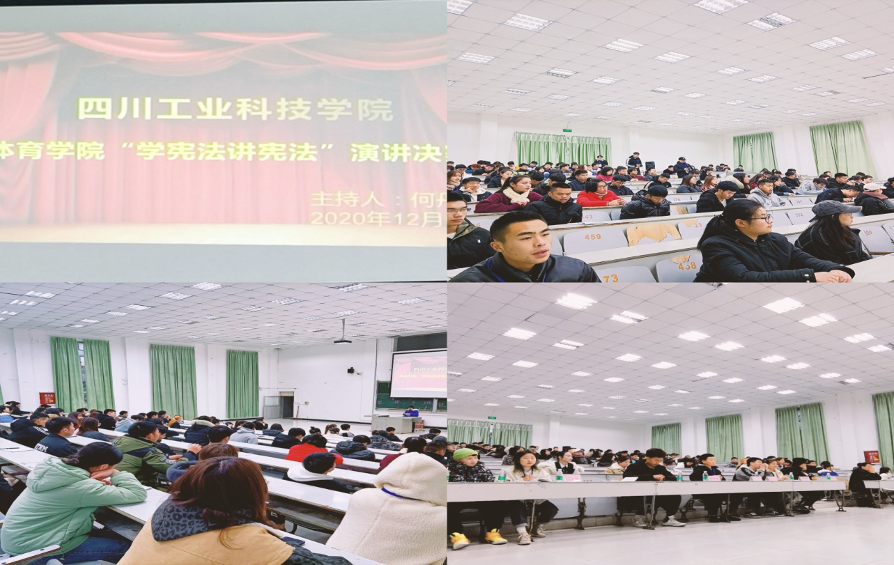 体育学院为尊崇宪法、学习宪法、遵守宪法、维护宪法、运用宪法。四川工业科技学院积极响应国家号召,于2020年12月3日晚上7点在教学楼311和313教室开展“宪法知识竞赛”预赛。进入决赛的同学于12月6日参加第二轮宪法演讲比赛。同学们积极参与此次活动。本次活动由团总支和焦点励志社承办和开展。